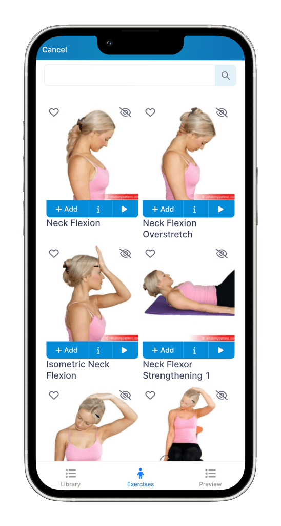 Simply search for specific exercises, browse through categories, create from templates... find the perfect fit for each patient's needs.