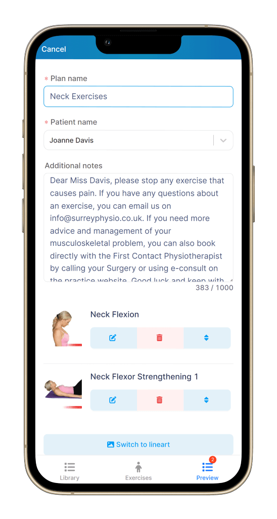 Protect your patients and yourself. Automatically include safety netting and red flag alerts in every exercise plan. Stay compliant, confident, and covered.